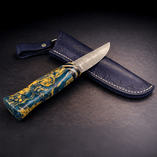 Kök Ambonya ve Mamut Kombinasyon Kabza Puukko Bıçak – Paslanmaz Damascus Çelik, El Yapımı